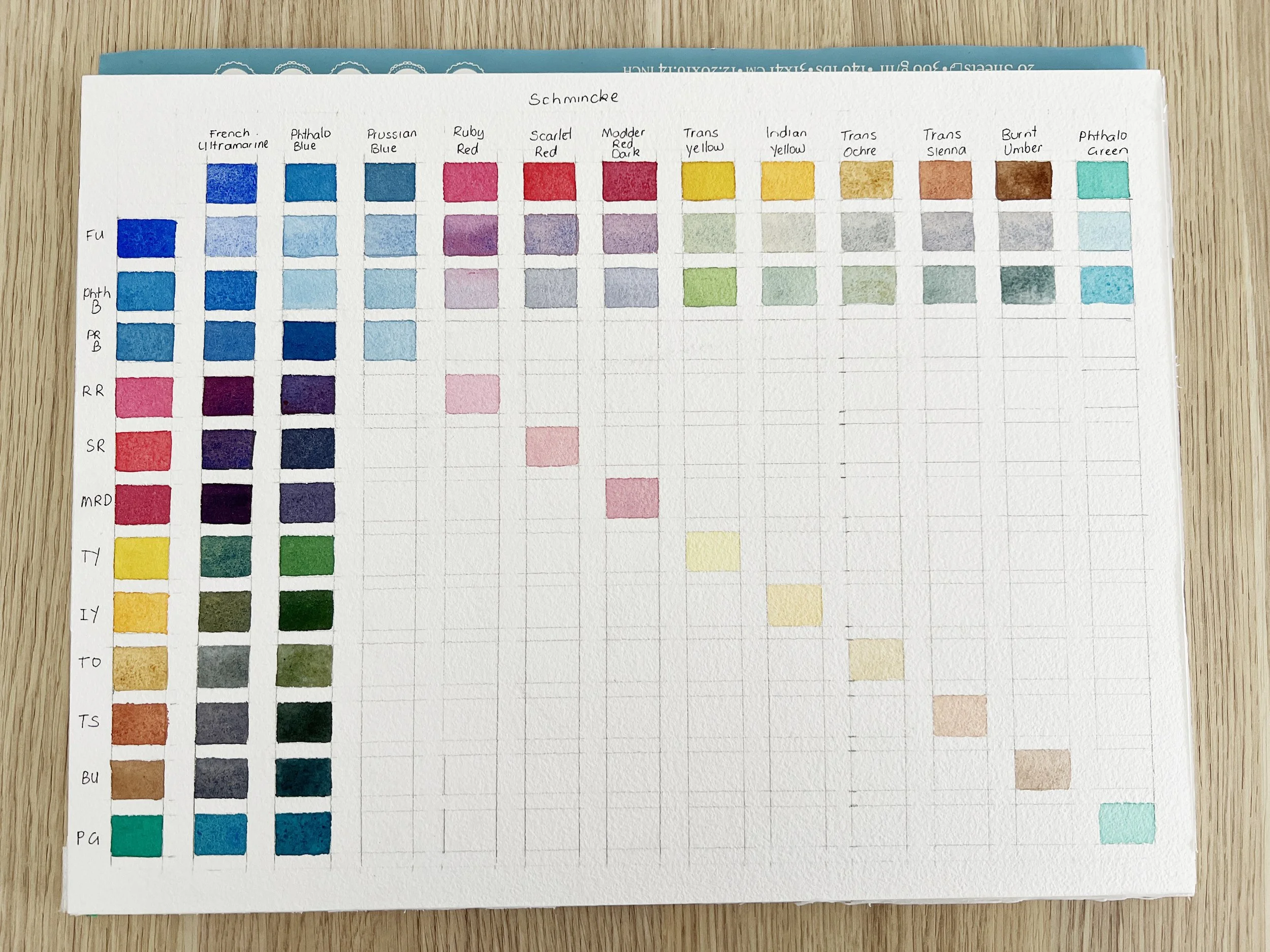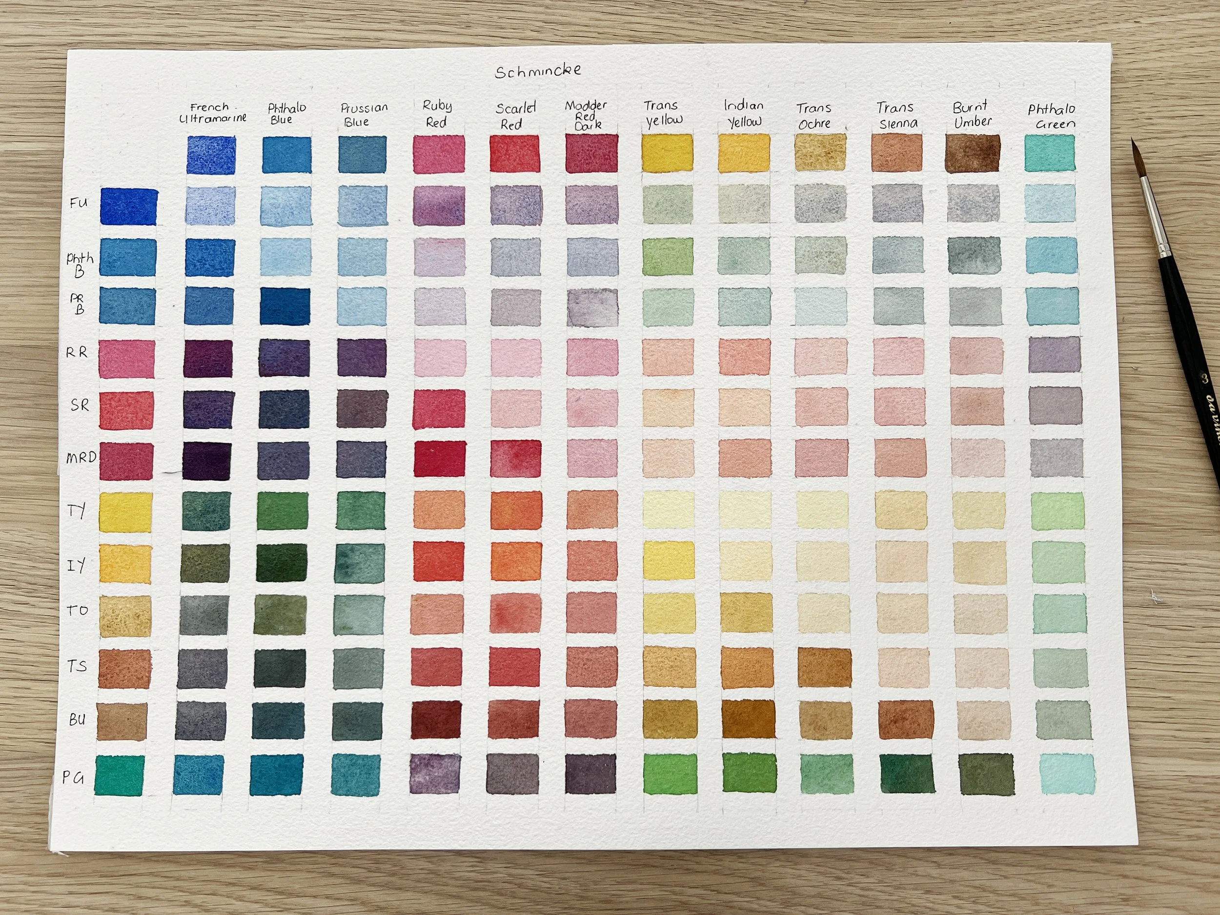 If you create your own mixed colours chart using this Schmincke palette, I’d love to see it. Share it with me; tag me on Instagram or send a photo through my website. Watching how differently each artist interprets these same pigments is endlessly inspiring.