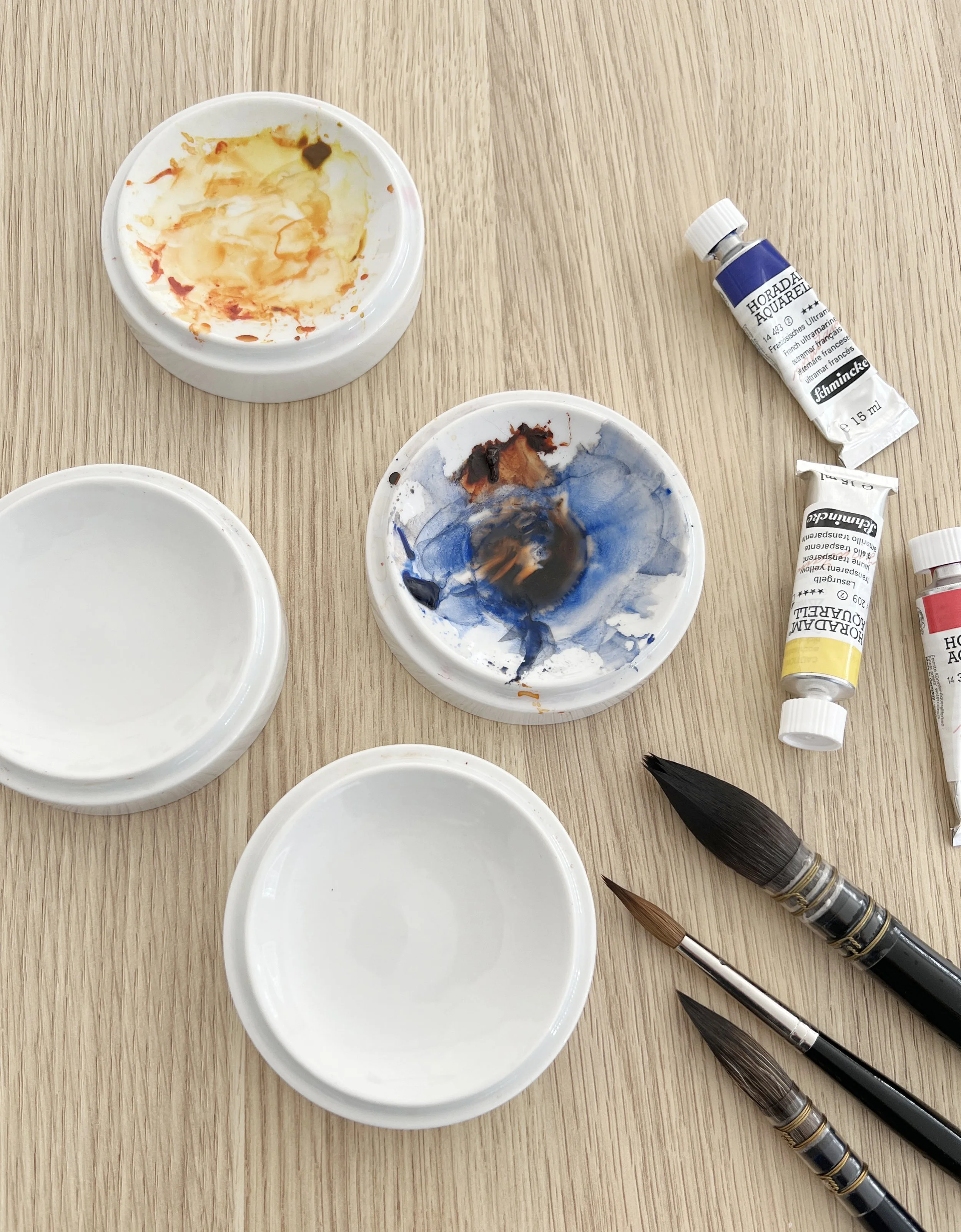 I love these little dish palettes for mixing paint colours.