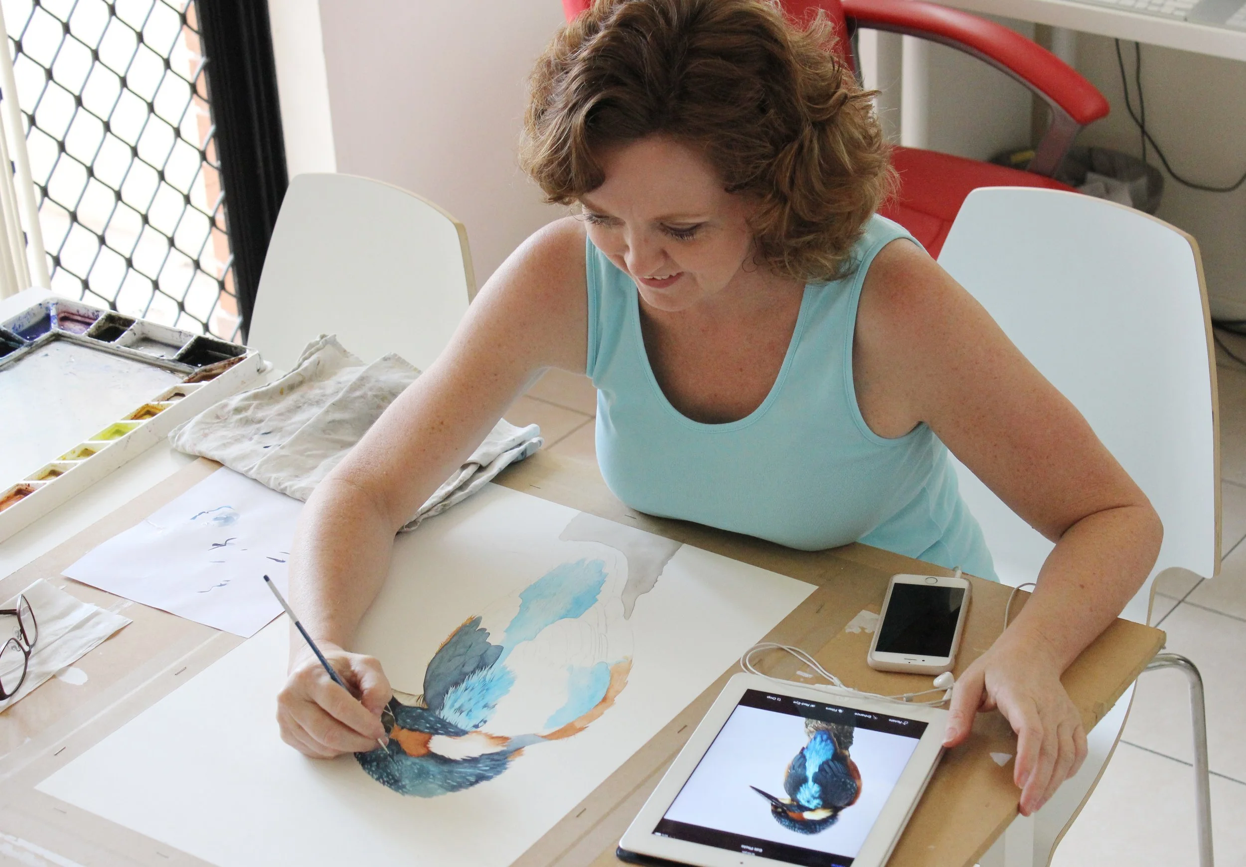 Standing back from my painting helps me answer questions like, 'Do I need more colour?'