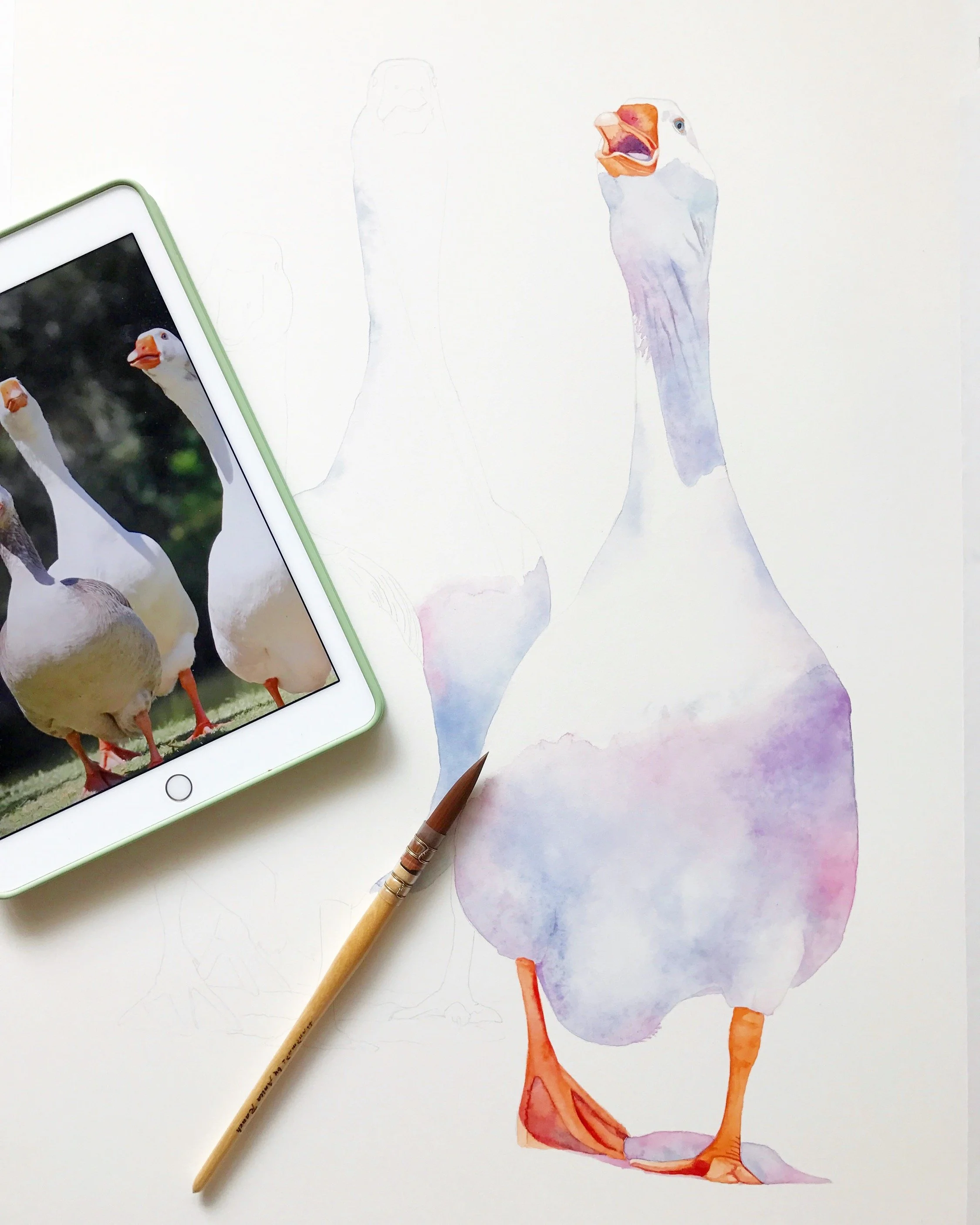 Watch the sheen on the watercolor paper.