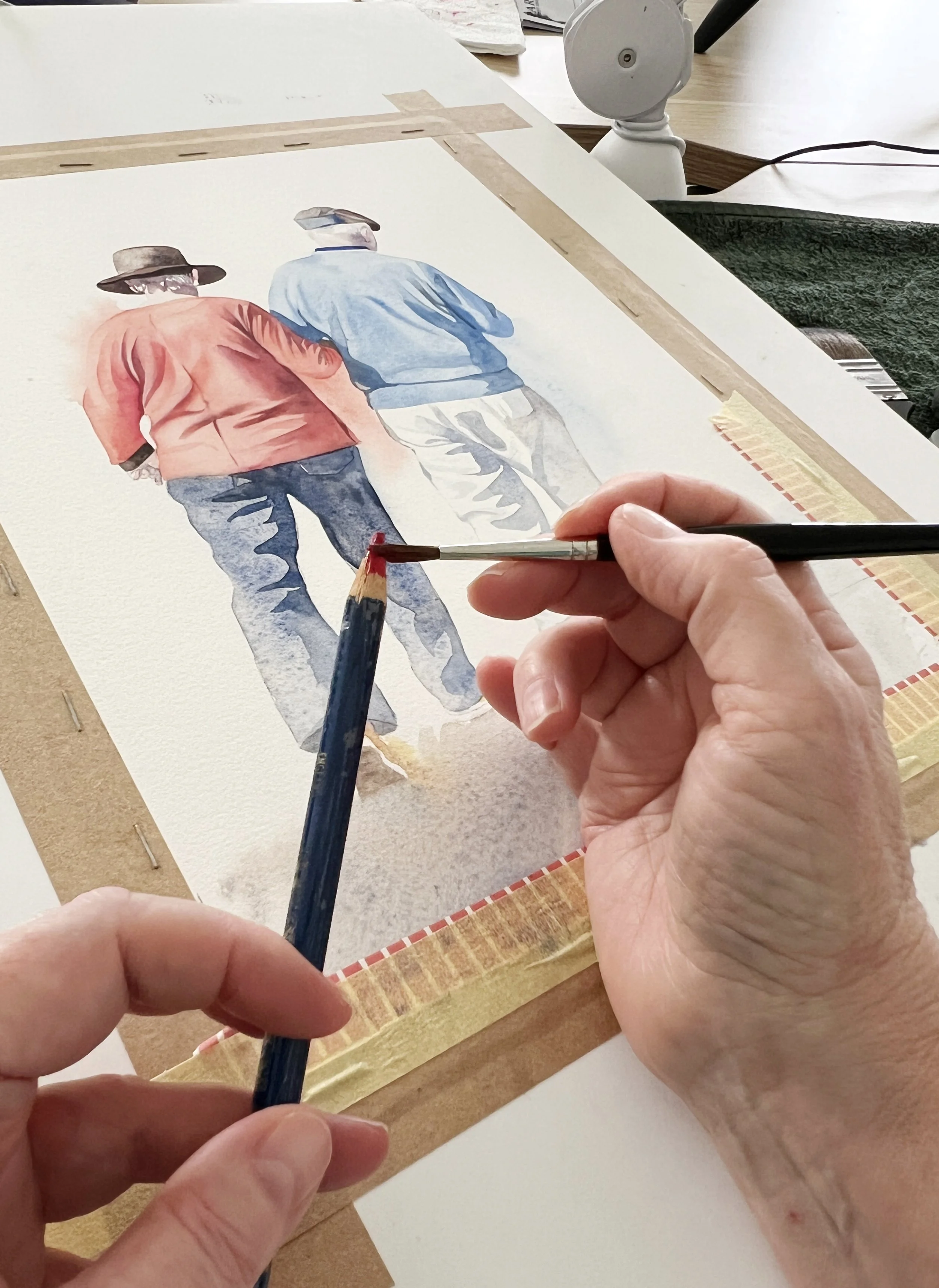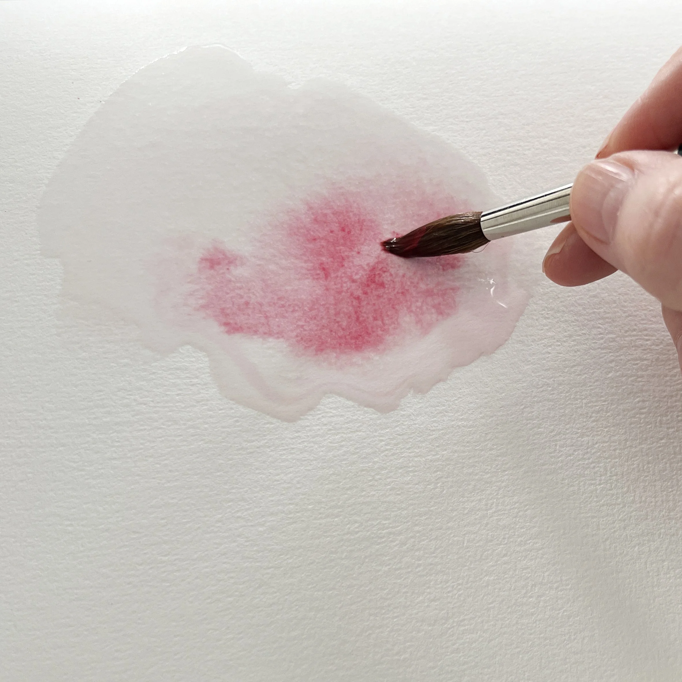 To activate the pigment, some artists use water brushes, but I find their bristles too stiff. Instead, I prefer my regular watercolour brushes, most often a Da Vinci Maestro round brush. For this painting, I used a size 2, which gave me precision and control.