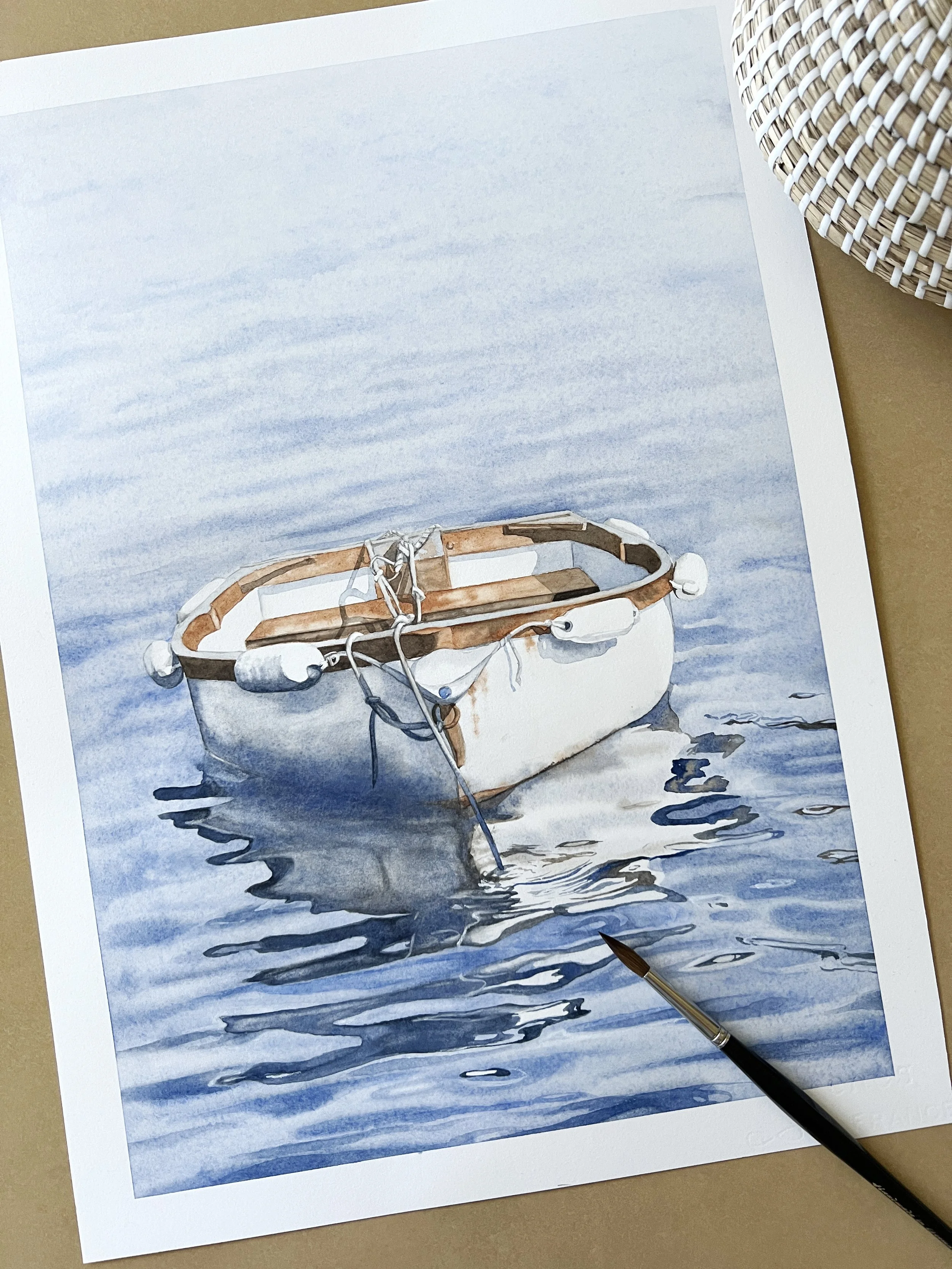 You can, and it creates a completely different look. When you draw with a dry pencil onto wet paper, the marks soften immediately. I like this effect for textures such as water reflections, which I used in a boat painting.