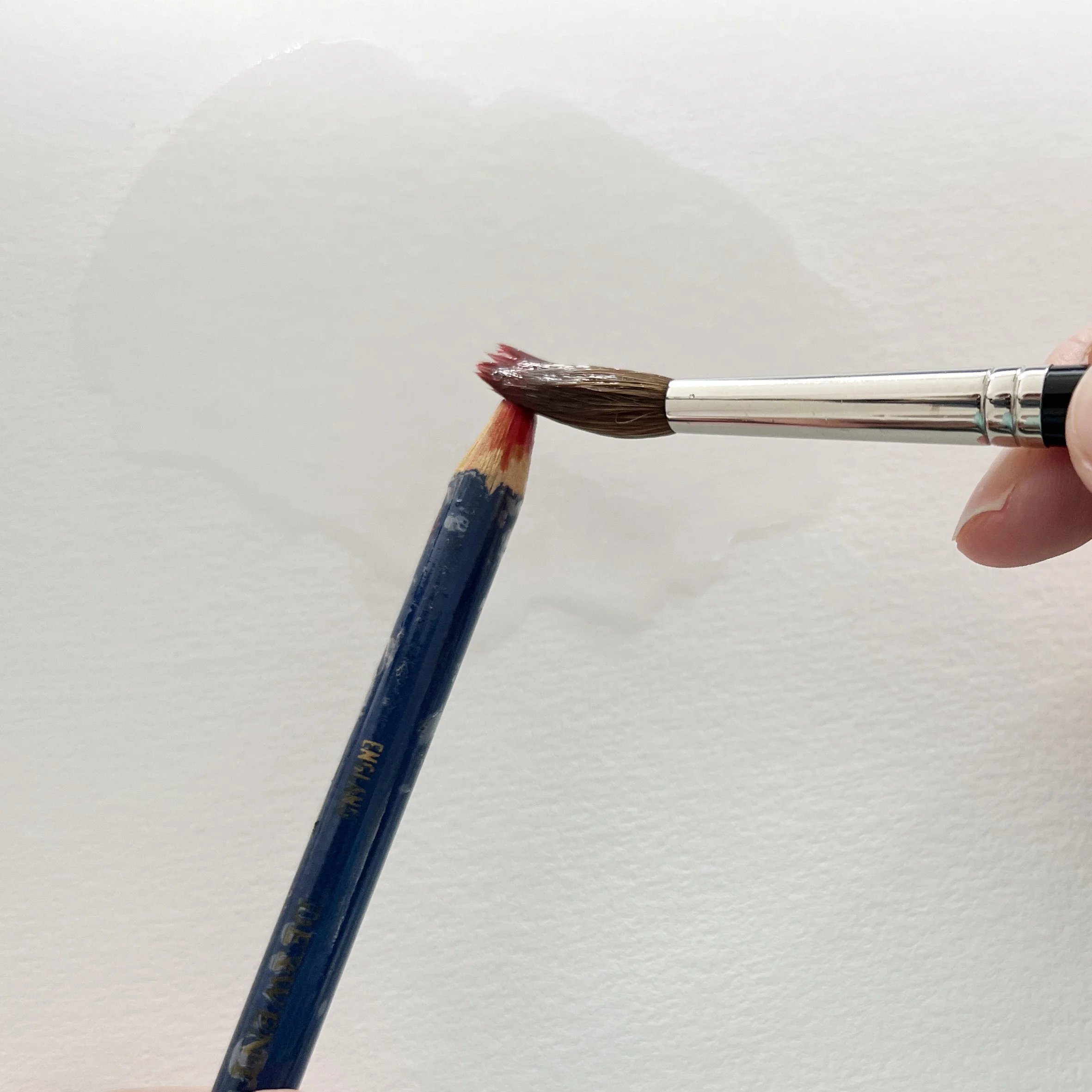 Wiping a wet brush over the pencil allows you to use pigment that is completely dissolved.